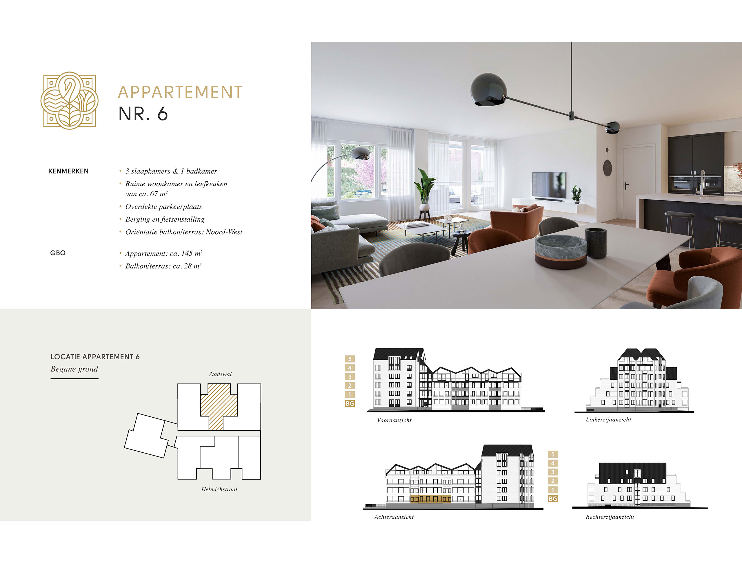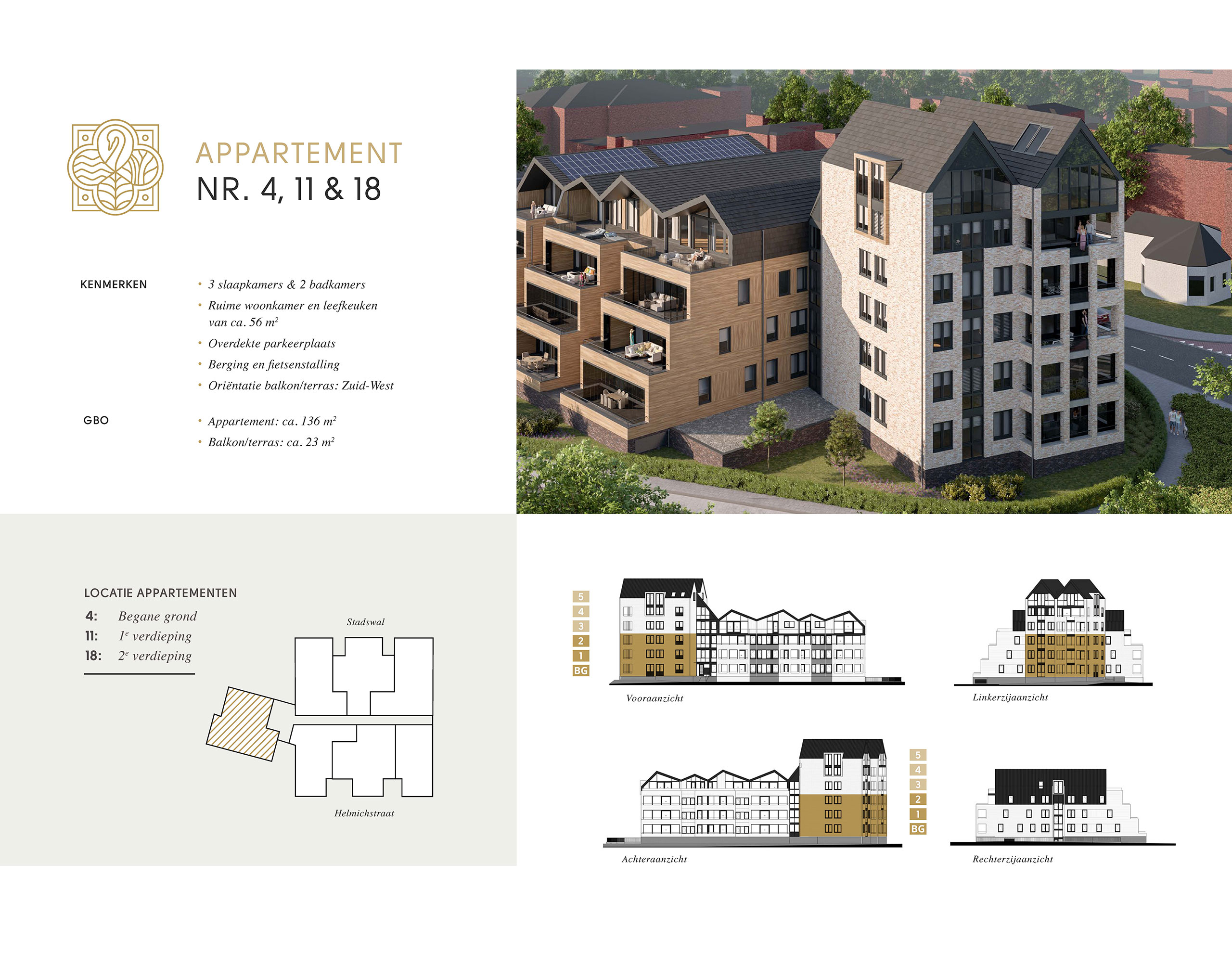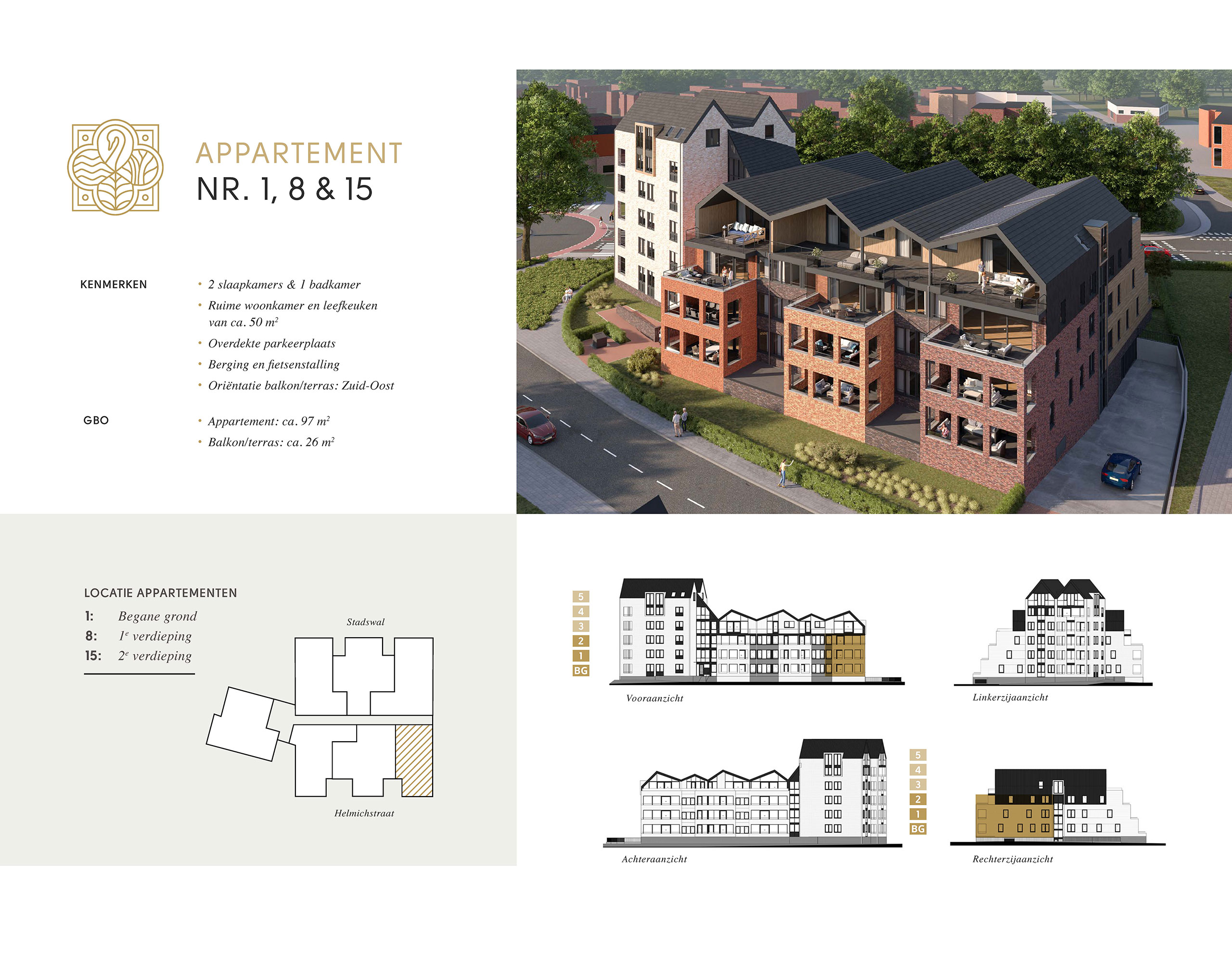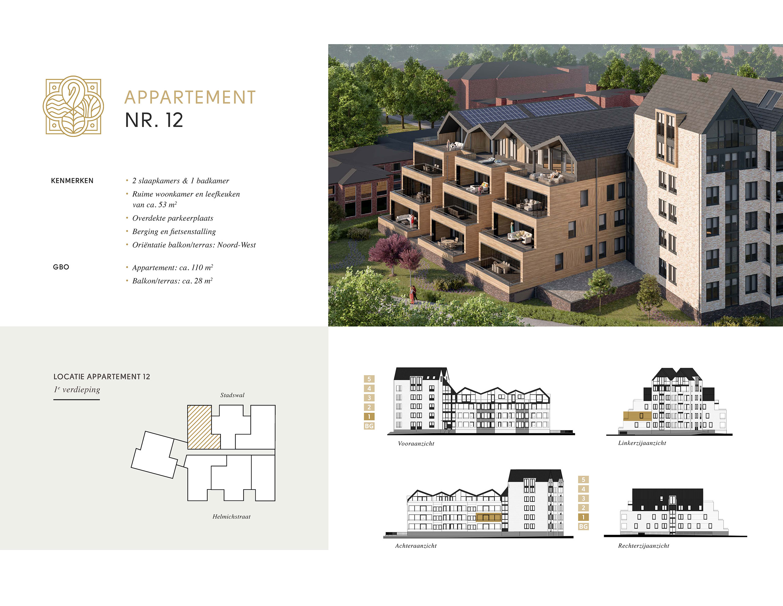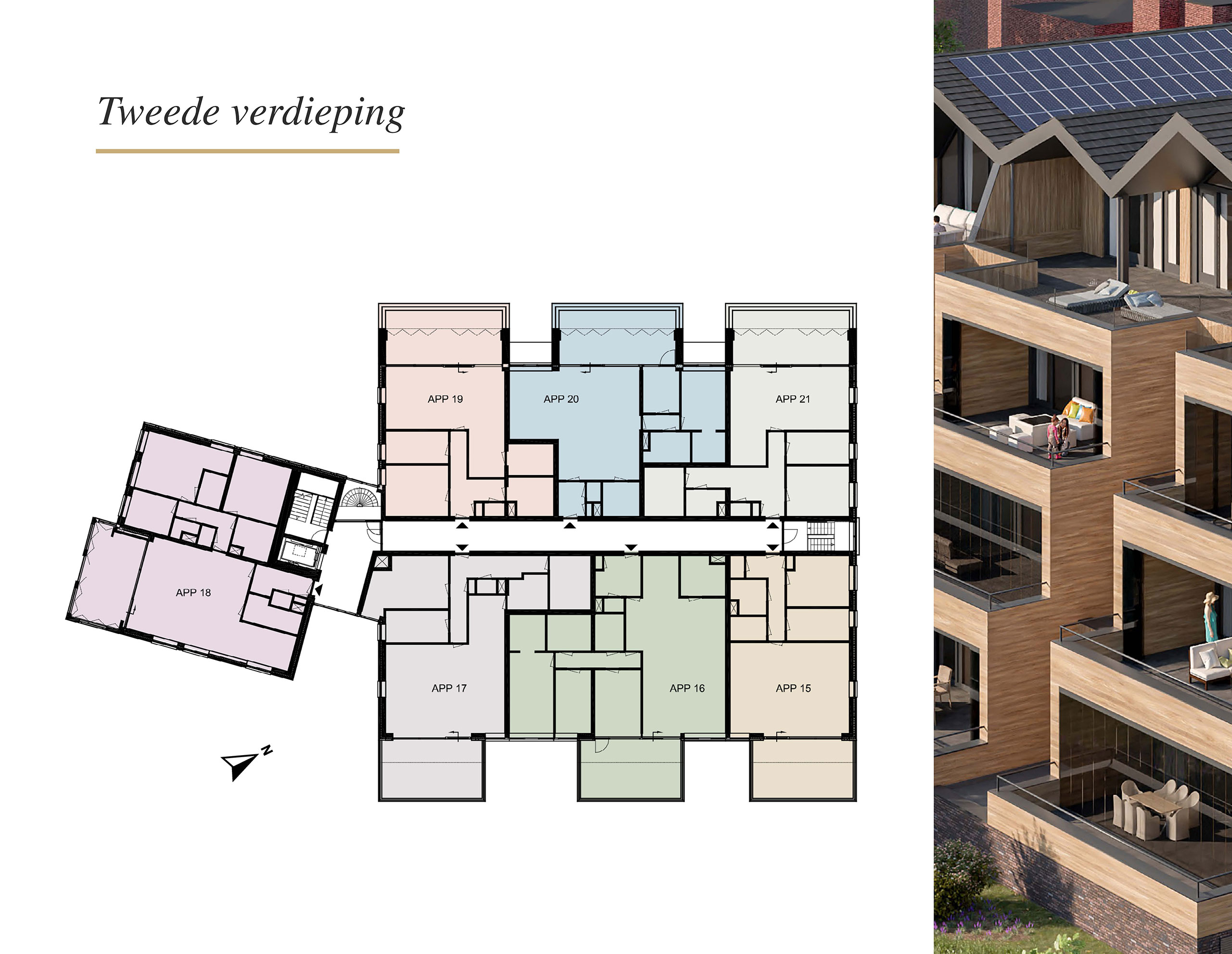 Het bovenste penthouse in de toren beschikt over twee woonlagen, met extra ruimte voor slaap-, hobby- of studieruimte. Het daaronder gelegen penthouse loopt vanaf de toren door naar het lager gelegen gebouw. Alle appartementen en penthouses hebben een berging, inpandige parkeerplaats en fietsenstalling in het souterrain.